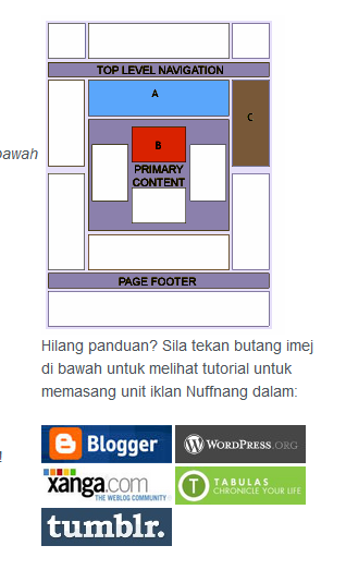 6. Kemudian, untuk memudahkan kerja anda dalam menyelesaikan pemasangan iklan nuffnang di blog sila anda lihat di bahagian kanan halaman nuffnang tadi dan klik pada tulisan blogger dan anda akan bibawa ke halaman baru dimana halaman tersebut menyediakan tutorial penuh cara untuk pemasangan iklan nuffnang. (lihat gambar di atas)
